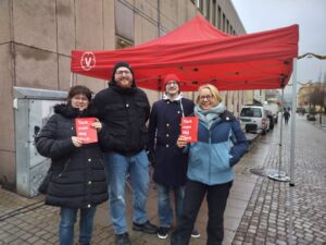 Vi träffade många människor när vi stod på Kungsgatan under decembers julmarknad. De var intresserade av vår politik och flera ville bli medlemmar i Vänsterpartiet.